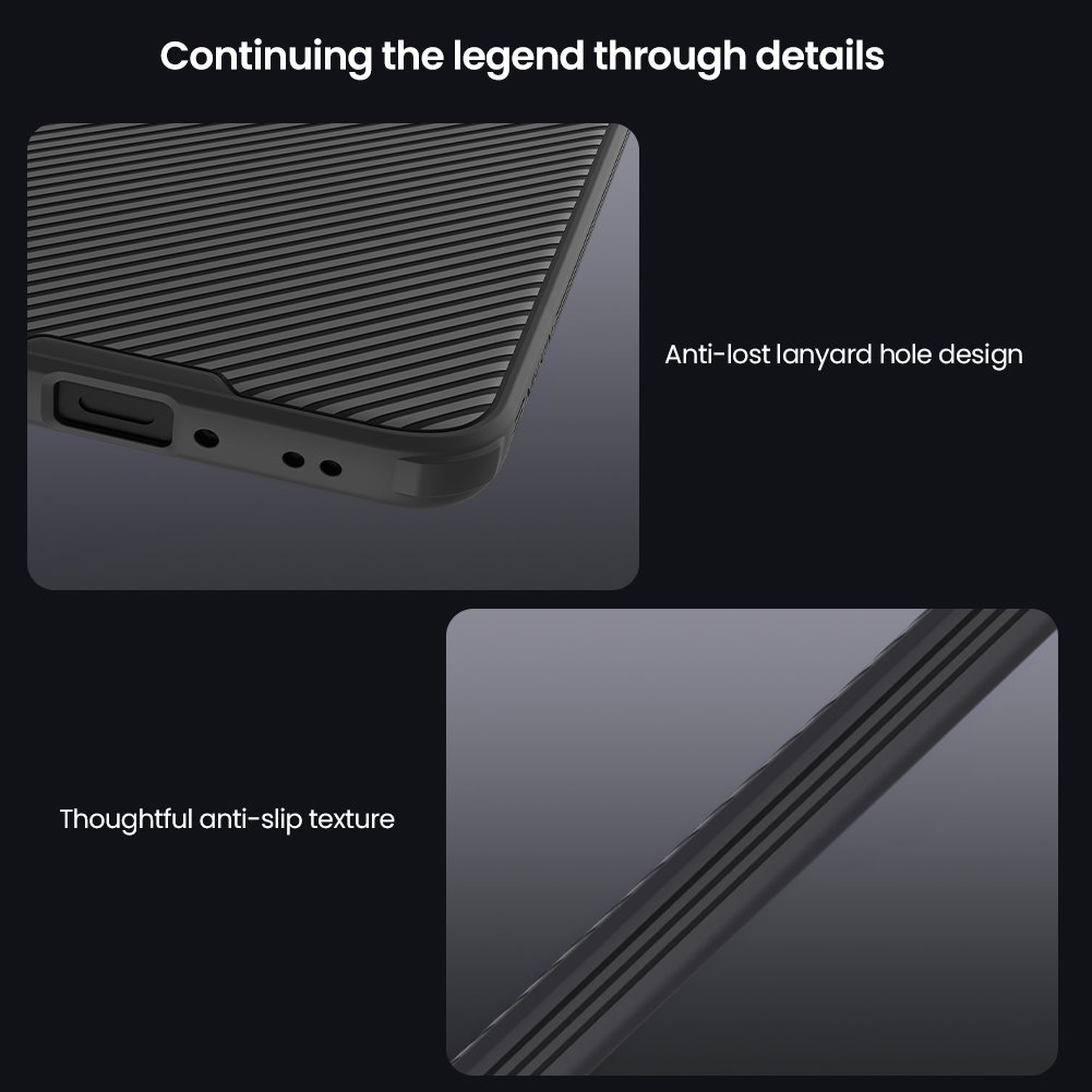 Kryt Nillkin CamShield PRO se pyšní hybridní konstrukcí, která kombinuje dva vysoce kvalitní materiály pro zajištění nejlepší možné ochrany. Zadní část krytu, včetně jedinečného posuvného modulu pro fotoaparát, je vyrobena z pevného a odolného polykarbonátu (PC). Tento materiál je odolný proti poškrábání a nárazům. Rámeček krytu je vyroben z měkčeného a pružného TPU plastu, který perfektně tlumí nárazy při pádech a chrání tak nejzranitelnější části telefonu, jako jsou rohy a hrany. Povrch krytu má jemnou texturu, která je nejen příjemná na dotek, ale také zabraňuje ulpívání otisků prstů a mastnoty. Dominantním prvkem je posuvný kryt fotoaparátu, který chrání čočky před poškrábáním a zároveň zajišťuje vaše soukromí. Všechny výřezy pro konektory a ovládací prvky jsou precizně zpracovány pro pohodlné a bezproblémové používání.