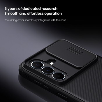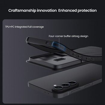 Zadní kryt Nillkin CamShield PRO pro Samsung Galaxy A37 černýDesign se vyznačuje čistým a minimalistickým vzhledem s charakteristickými diagonálními drážkami na zadní straně a posuvnou krytkou objektivů.