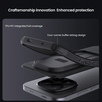 Zadní kryt Nillkin CamShield PRO pro Xiaomi Redmi Note 15 Pro 5G BlackPředstavujeme vám unikátní kryt Nillkin CamShield PRO, který byl navržen pro nekompromisní ochranu vašeho telefonu. Tento kryt kombinuje vysoce odolné materiály, elegantní design a jedinečnou funkci posuvného krytu, který chrání čočku fotoaparátu před poškozením a znečištěním.