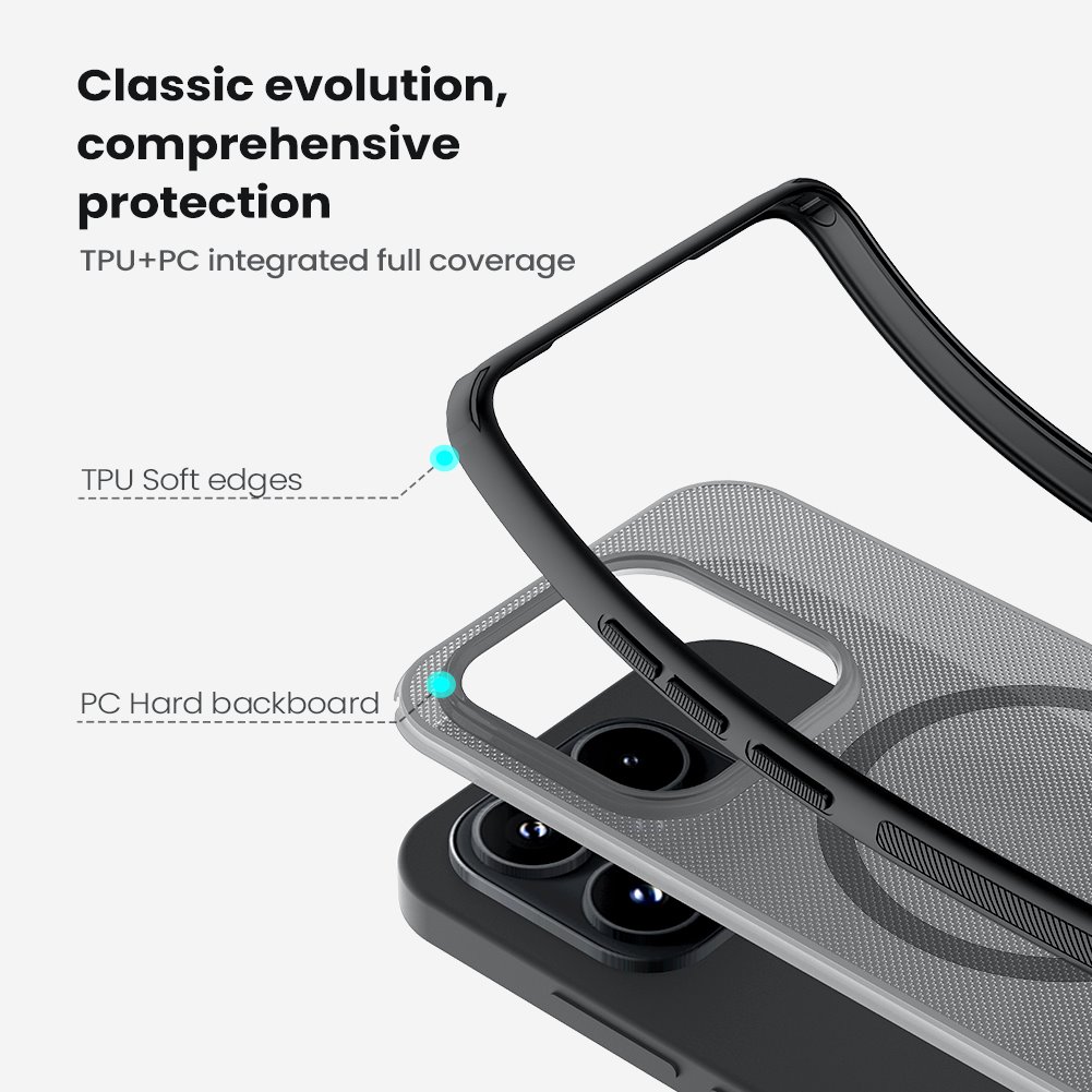Zadní kryt Nillkin Super Frosted PRO Magnetic pro Xiaomi 17 průhledně černýKombinuje oblíbený technický zrnitý povrch Frosted a zabudovaný magnetický kroužek ukrytý ve stěně.