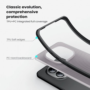Boky krytu jsou vyrobeny z pružného a měkkého TPU materiálu, který usnadňuje nasazování krytu a zároveň spolehlivě pohlcuje energii nárazu. Rohy krytu jsou speciálně zesílené, aby poskytovaly maximální ochranu nejzranitelnějším částem telefonu při pádu. Všechny výřezy pro ovládací prvky, fotoaparát a potřebné konektory jsou vyřezány s absolutní přesností a zajišťují tak plnohodnotné a pohodlné ovládání telefonu bez jakýchkoliv omezení.